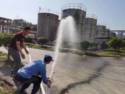 根據(jù)企業(yè)應(yīng)急預(yù)案要求及安全計(jì)劃安排,安全上樹立憂患意識(shí),做到常備不懈;5月12日公司安環(huán)部組織當(dāng)班操作工、動(dòng)力部安環(huán)部、生產(chǎn)部、倉(cāng)管人員進(jìn)行重大危險(xiǎn)源噴泡沫應(yīng)急演練。